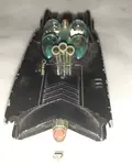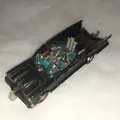 Der er leget med bilen og fremstår med riser. Forhjulet hænger, mangler raket, antenne